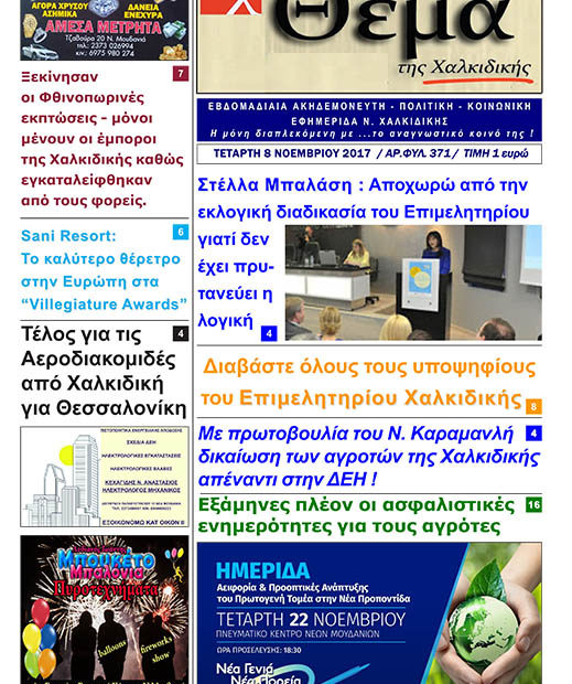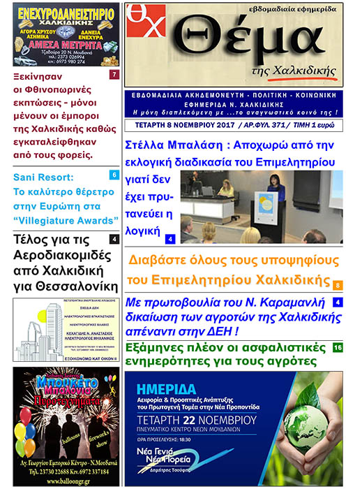Θέμα Χαλκιδικής Τεύχος 371 Θέμα της Χαλκιδικής Εβδομαδιαία Εφημερίδα “Θέμα Χαλκιδικής” Τετάρτη 8 Νοεμβρίου- Φύλλο 371 Κάντε κλικ στο Πρωτοσέλιδο για να ξεφυλλίσετε. Πλοήγηση άρθρων Προηγούμενο Previous post: Αλλαγή όνομα συντάκτη στο άρθρο – Δημιουργία νέου συντάκτη.Επόμενο Next post: Ο ΚΡΥΜΜΕΝΟΣ ΠΛΟΥΤΟΣ ΤΗΣ ΕΛΛΑΔΑΣ Του Παναγιώτη Σγουρίδη * ΣΧΕΤΙΚΑ ΑΡΘΡΑ ΕΠΙΜΕΛΗΤΗΡΙΟ ΧΑΛΚΙΔΙΚΗΣ – ΔΤ & ΦΩΤΟ ΑΠΟ ΣΥΜΜΕΤΟΧΗ ΣΤΗΝ ΕΚΘΕΣΗ REAL ESTATE EXPO 2022 Συλλήψεις για κλοπή ΕΠΙΜΕΛΗΤΗΡΙΟ ΧΑΛΚΙΔΙΚΗΣ – ΜΕ ΤΗΝ ΥΠΟΣΤΗΡΙΞΗ ΤΟΥ ΕΠΙΜΕΛΗΤΗΡΙΟΥ ΤΟ ΠΑΝΕΛΛΗΝΙΟ ΠΡΩΤΑΘΛΗΜΑ ΠΟΔΗΛΑΣΙΑΣ ΔΡΟΜΟΥ ΣΤΗΝ ΧΑΛΚΙΔΙΚΗ Αφήστε μια απάντηση Ακύρωση απάντησηςΗ ηλ. διεύθυνση σας δεν δημοσιεύεται. Τα υποχρεωτικά πεδία σημειώνονται με *Σχόλιο * Όνομα * Email * Ιστότοπος Αποθήκευσε το όνομά μου, email, και τον ιστότοπο μου σε αυτόν τον πλοηγό για την επόμενη φορά που θα σχολιάσω. Δ Current ye@r * Leave this field empty
