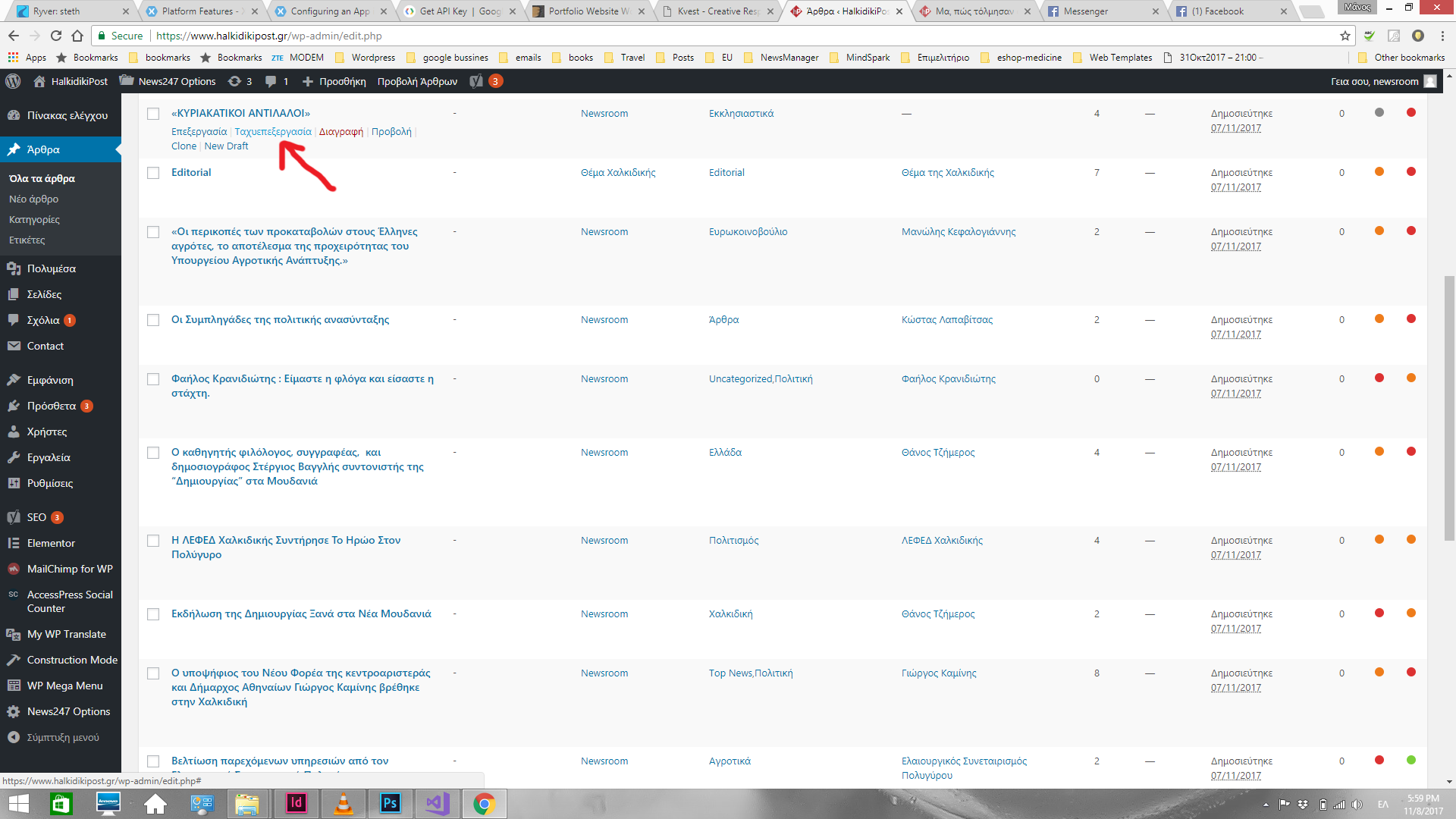 - Στα άρθρα, πλησιάζεις το ποντίκι σε ένα άρθρο, και μόλις σου εμφανίσει τις επιλογές που βλέπεις από κάτω, πατάς ταχυεπεξεργασία.
