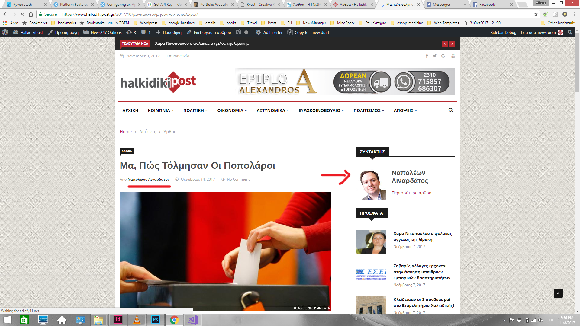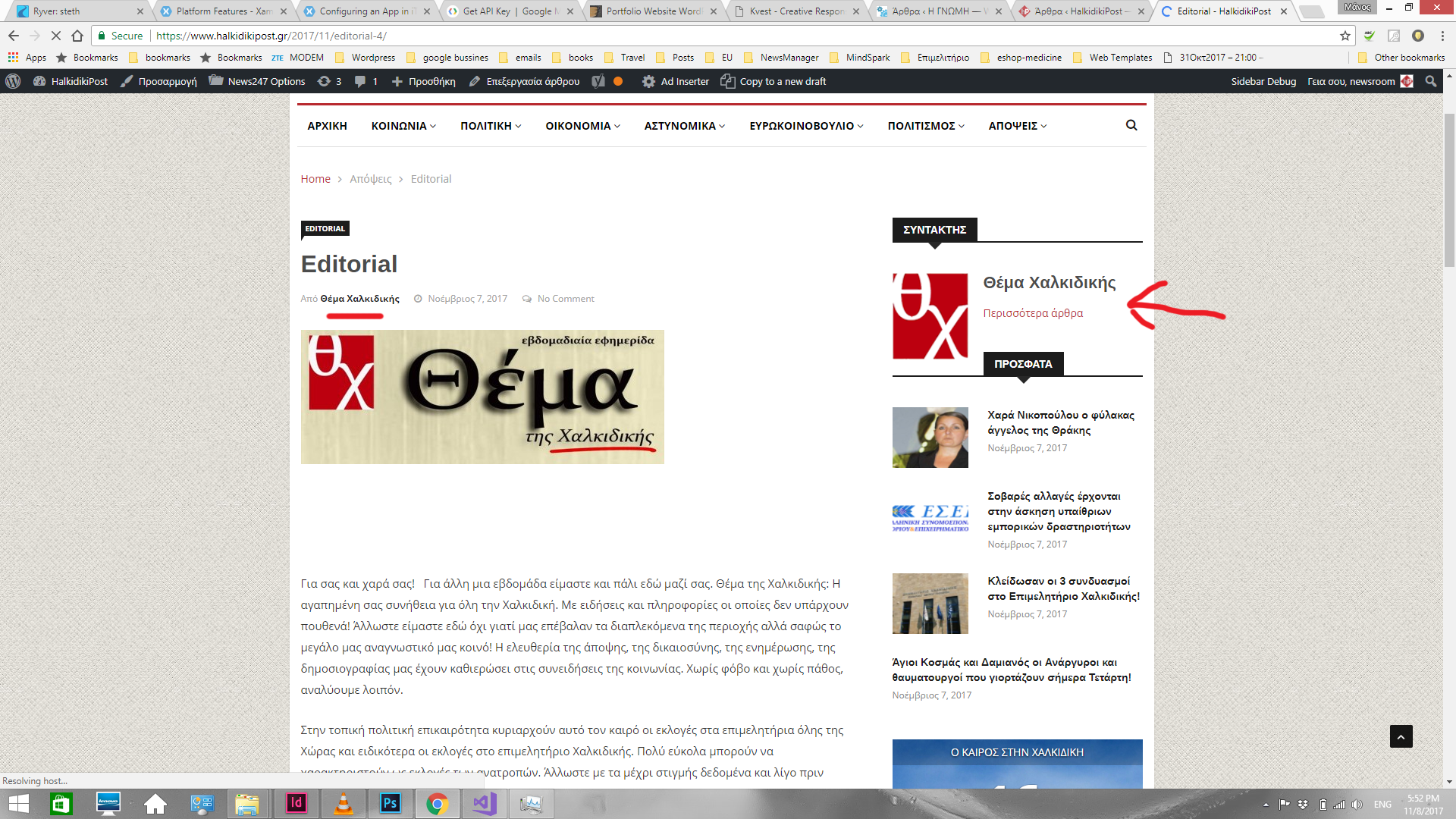 3. Όταν ανοίξεις το άρθρο βλέπεις ότι έχει αλλάξει ο συντάκτης από newsroom σε “Θέμα Χαλκιδικής”. Σε οποιοδήποτε συντάκτη πέρα του newsroom, έχω βάλει να εμφανίζεται φωτο δεξιά.