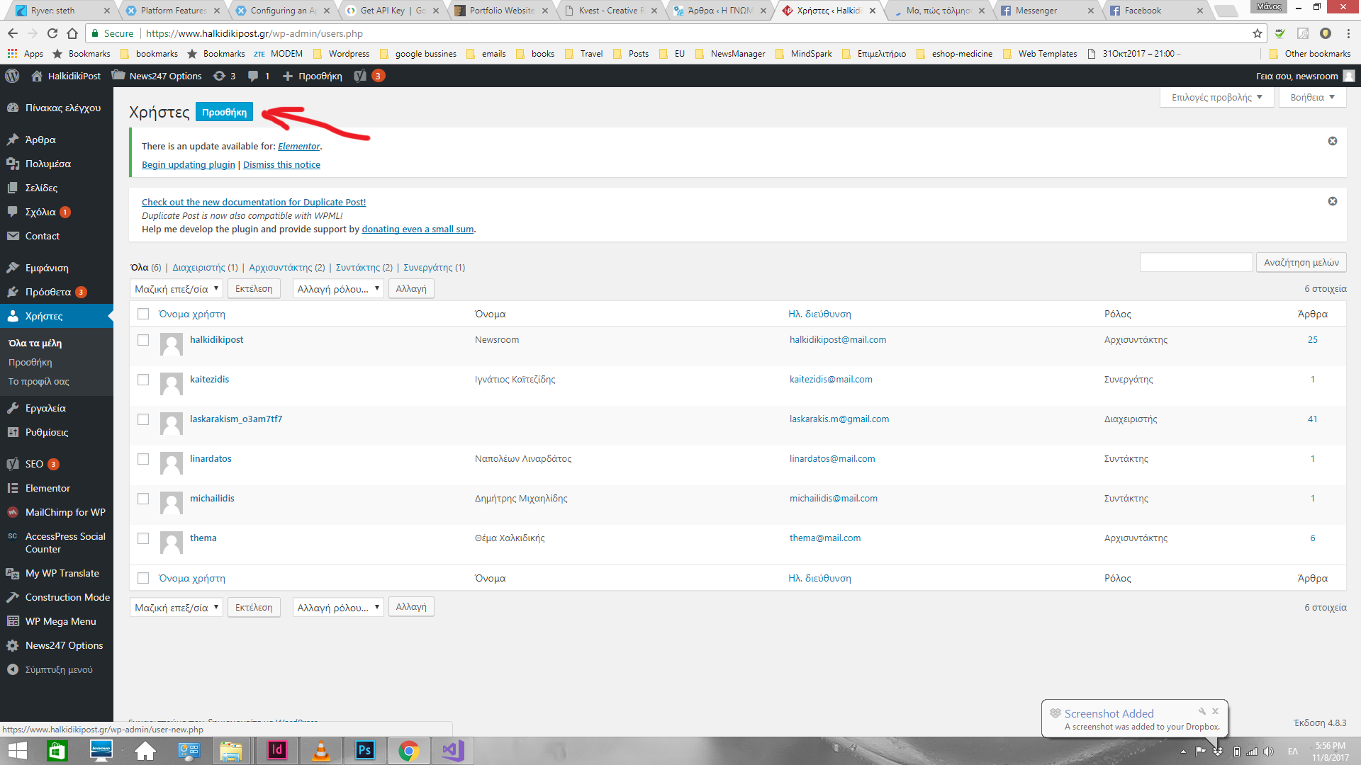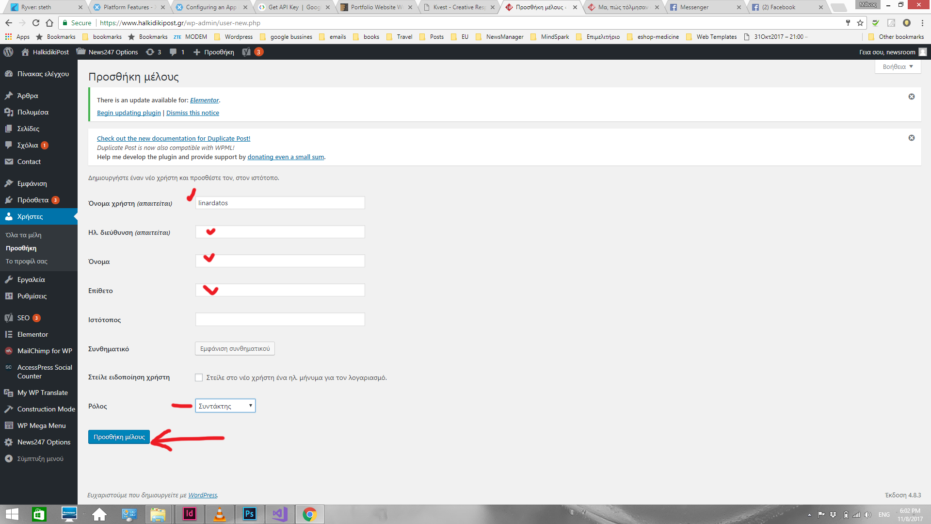 3. Συμπληρώνεις τα πεδία που έχω σημειώσει. Εδώ βάζω πχ τον συντάκτη Λυναρδάτο. (ηλεκτρονική διεύθυνση μπορείς να βάλεις μια υποθετική) Και πατάς “προσθήκη μέλους”. * Το όνομα και Επίθετο θα εμφανίζονται στο άρθρο, οπότε βάλε ελληνικούς χαρακτήρες. Ρόλο βάλε συντάκτη, μη στείλεις ειδοποίηση.