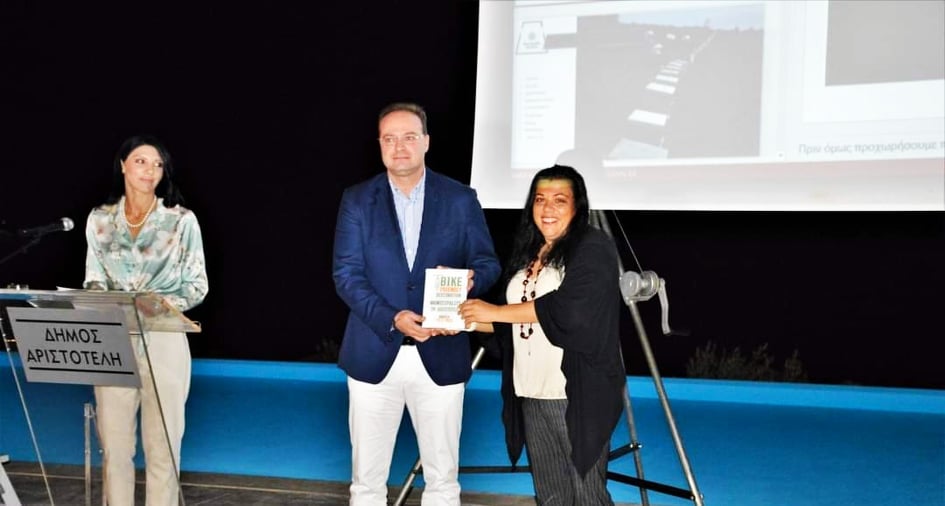 Στη διάρκεια της ίδιας εκδήλωσης, στο Δήμαρχο αποδόθηκε και επίσημα από την εταιρία NATOUR η bike friendly πιστοποίηση του προορισμού, η οποία αποκτήθηκε το Φεβρουάριο του 2020, προσδίδοντας στην Ανατολική Χαλκιδική τον τίτλο της πρώτης ελληνικής φιλικής στην ποδηλασία και τον ποδηλάτη τουριστικής περιοχής.