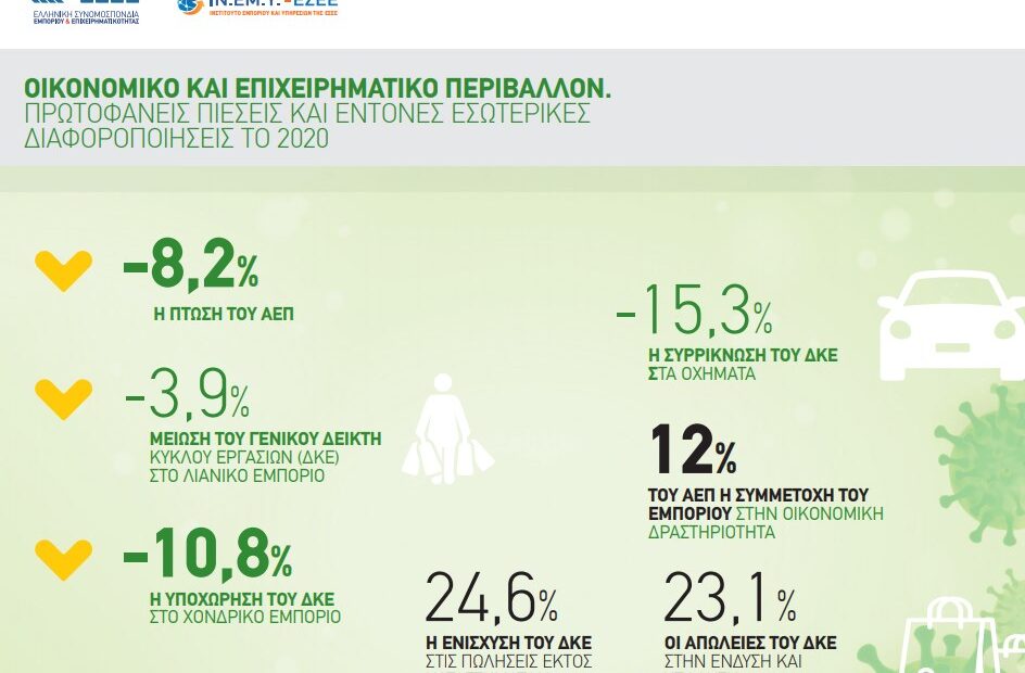 Σύμφωνα με την Έκθεση για το 2020 ο κλάδος δέχεται ισχυρές πιέσεις από το οικονομικό και επιχειρηματικό περιβάλλον, αλλά διατηρεί την σημαίνουσα συμμετοχή του στην οικονομική δραστηριότητα (12% του ΑΕΠ) παραμένοντας παράλληλα ο κυριότερος εργοδότης της χώρας (18,3% στη συνολική απασχόληση). Ωστόσο, η πανδημία συνιστά ιδιαίτερη απειλή για τις εμπορικές επιχειρήσεις καθώς το 88% αυτών θεωρεί πως ο Covid-19 θα επηρεάσει αρνητικά τον κύκλο εργασιών, ενώ το 56% των επιχειρήσεων εκτιμά πως η πτώση του κύκλου εργασιών θα υπερβεί το 40%.