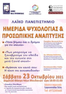 Ο Δήμος Νέας Προποντίδας σε συνεργασία με τον Σύλλογο Επιστημόνων Κεντρικής Μακεδονίας «Αριστοτέλης», φορέα του Λαϊκού Πανεπιστημίου Νέων Μουδανιών, διοργανώνουν «Ημερίδα Ψυχολογίας και Προσωπικής Ανάπτυξης» στα Ν. Μουδανιά.