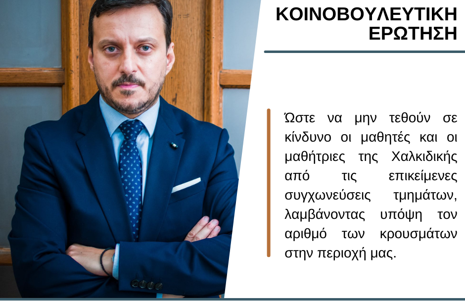 Κοινοβουλευτική παρέμβαση στη Βουλή κατέθεσε ο Γραμματέας της και Βουλευτής Χαλκιδικής Πάνας Απόστολος μαζί με τους συναδέλφους της Κ.Ο. του Κινήματος Αλλαγής, απευθυνόμενος προς την Υπουργό Παιδείας κ. Κεραμέως Νίκη, σχετικά με τις συμπτύξεις και καταργήσεις των τμημάτων στα σχολεία της επικράτειας αλλά και στη Χαλκιδική.