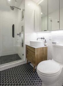 Αν θέλετε να κάνετε το χώρο πιο αντιολισθητικό, αλλάξτε μόνο τα πλακάκια στο πάτωμα σε πρώτη φάση και σε επόμενη ανακαίνιση αλλάζετε και τα υπόλοιπα.