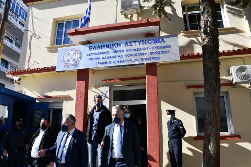 Επίσκεψη του Υπουργού Προστασίας του Πολίτη κ. Τάκη Θεοδωρικάκου και του Υφυπουργού Εσωτερικών κ. Σταύρου Καλαφάτη, στο Αστυνομικό Τμήμα Ευόσμου