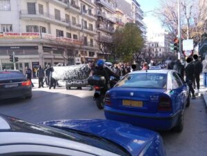 Νωρίτερα, μετά από σχετικό κάλεσμα οι διαδηλωτές συγκεντρώθηκαν στην Καμάρα, όπου κρατώντας πανό και εκτοξεύοντας φέιγ βολάν επιδεικνύουν την αντίθεσή τους στην επιχείρηση εκκένωσης της κατάληψης στο Βιολογικό του Αριστοτελείου Πανεπιστημίου Θεσσαλονίκης.