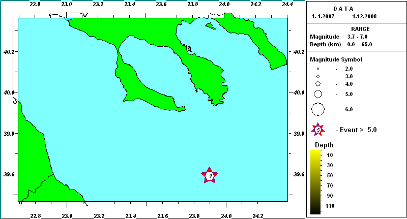Υπάρχουν διαθέσιμα στοιχεία μόνο για τους σεισμούς της Αρναίας το 1995, της Χαλκιδικής το 2007 και της Ιερισσού το 1932