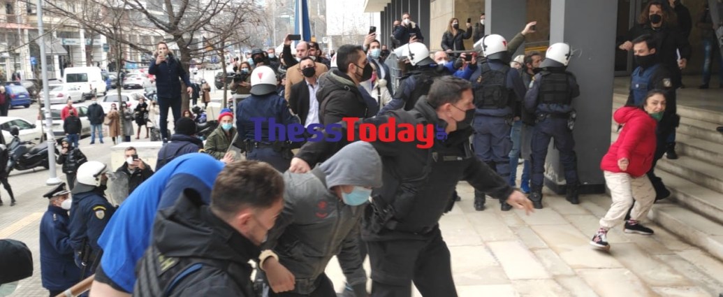Ισχυρές αστυνομικές δυνάμεις βρέθηκαν έξω από τα δικαστήρια, ώστε να μην δημιουργηθούν επιπλέον επεισόδια κατά την άφιξη των συλληφθέντων.
