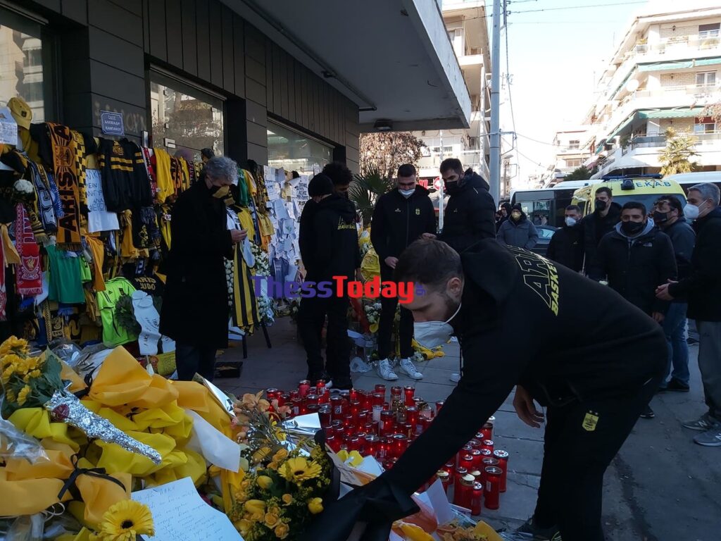 Στο σημείο βρέθηκαν επίσης ο προπονητής Γιάννης Καστρίτης, ο team manager, Χρήστος Ταπούτος και οι παίκτες Καμάρας, Σιδηροηλίας, Χάνλαν, Κάουαν. Να σημειωθεί ότι μέχρι και σήμερα δεν έχουν σταματήσει λεπτό να καταφθάνουν στο σημείο δεκάδες πολίτες και να αφήνουν λουλούδια και μηνύματα στη μνήμη του Άλκη.