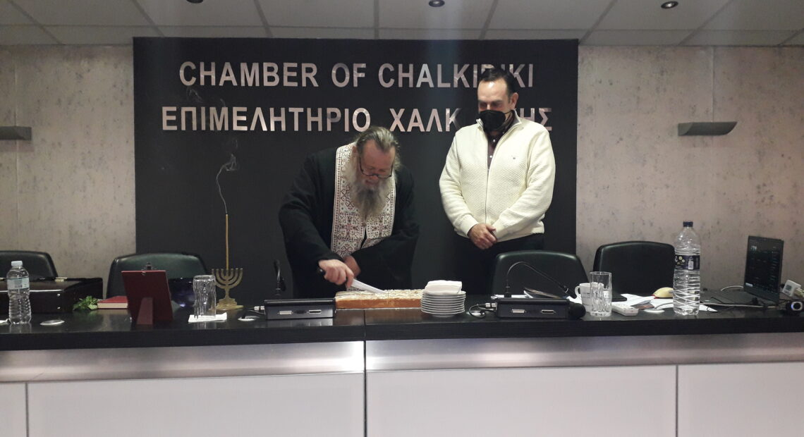 Το απόγευμα της Δευτέρας 31 Ιανουαρίου, στο Επιμελητήριο της Χαλκιδικής, τελέστηκε ο καθιερωμένος αγιασμός πριν την έναρξη της πρώτης συνεδρίασης του Διοικητικού Συμβουλίου για το νέο έτος και η κοπή βασιλόπιτας.
