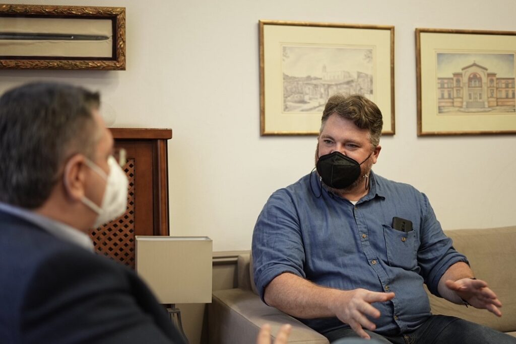 Οι κ.κ. Τζιτζικώστας και Van Norden, παρουσία του Αντιπεριφερειάρχη Τουρισμού Αλέξανδρου Θάνου και στελεχών του Film Office της Περιφέρειας Κεντρικής Μακεδονίας συναντήθηκαν στο γραφείο του Περιφερειάρχη και συζήτησαν τις λεπτομέρειες για την προετοιμασία της νέας χολιγουντιανής ταινίας, που θα γυριστεί στην περιοχή.