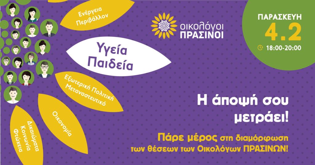 ΠΡΟΣΚΛΗΣΗ: Οικολόγοι ΠΡΑΣΙΝΟΙ: Υγεία και Παιδεία