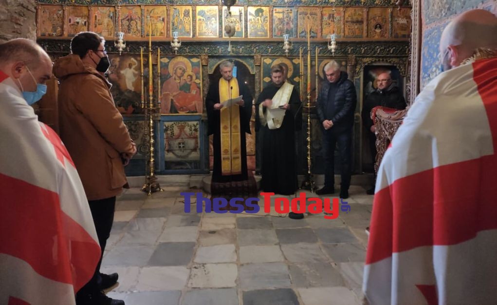 Η λειτουργία πραγματοποιείται σε ουκρανικά και ελληνικά, ενώ το παρών μεταξύ άλλων έδωσε και ο Γεωργιανός Πρόξενος, Nodar Komakhidze. Πολλοί έφτασαν στη μονή με σημαίες της Γεωργίας.