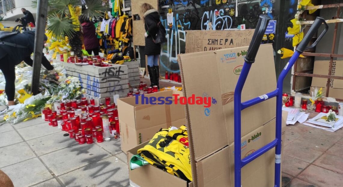 Στην οικογένεια του Άλκη Καμπανού θα μεταφερθούν σε κούτες τα εκατοντάδες αντικείμενα που συγκέντρωσαν αθλητές, εκπρόσωποι και φίλαθλοι άλλων ομάδων, αλλά και απλοί πολίτες, ως φόρο τιμής στη μνήμη του αδικοχαμένου 19χρονου, που έπεσε νεκρός τα ξημερώματα της προηγούμενης Τρίτης.