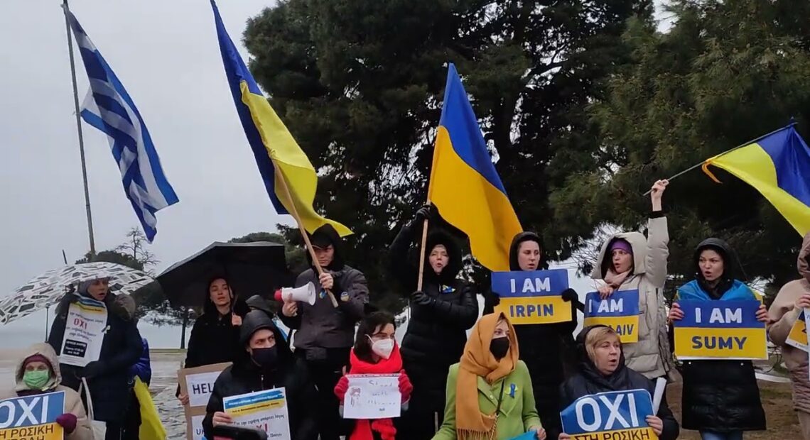 «Ευρώπη σώσε τα παιδιά μας», φωνάζουν για ακόμη μια μέρα Ουκρανοί πολίτες που ζουν στη Θεσσαλονίκη και πραγματοποιούν κινητοποίηση διαμαρτυρίας γύρω από τον Λευκό Πύργο, στο πλαίσιο της πρωτοβουλίας πολιτών Θεσσαλονίκης ενάντια στον πόλεμο.
