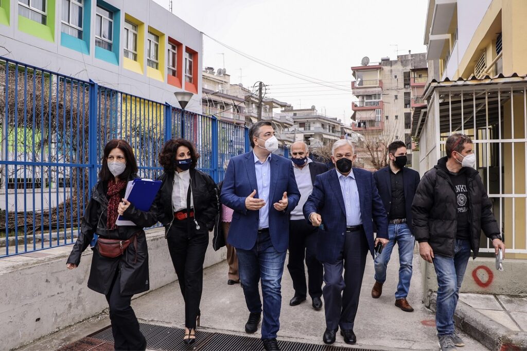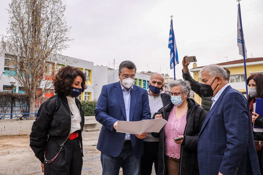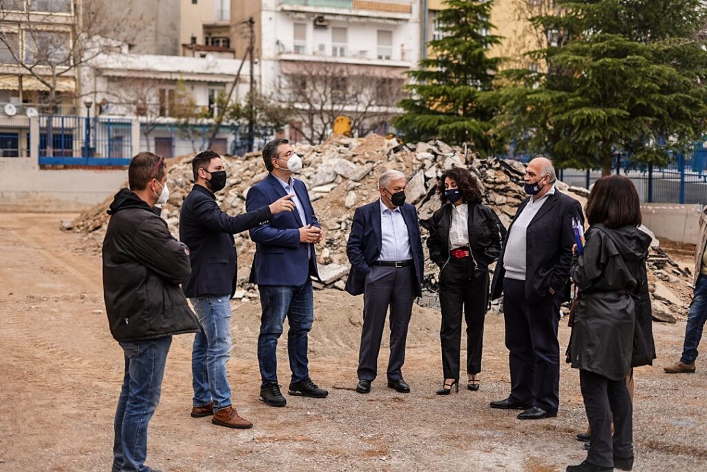 Επίσης επισκέφτηκαν ακόμη ένα έργο που χρηματοδοτεί η Περιφέρεια Κεντρικής Μακεδονίας στους Αμπελόκηπους και αφορά στην ανάπλαση της αυλής του 4ου Γυμνασίου.