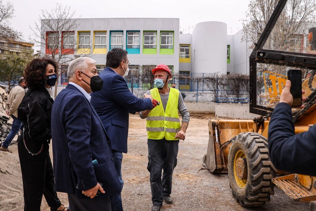 Ο Α. Τζιτζικώστας στα έργα ανάπλασης των εργατικών κατοικιών της Δαβάκη και του 4ου Γυμνασίου Αμπελοκήπων