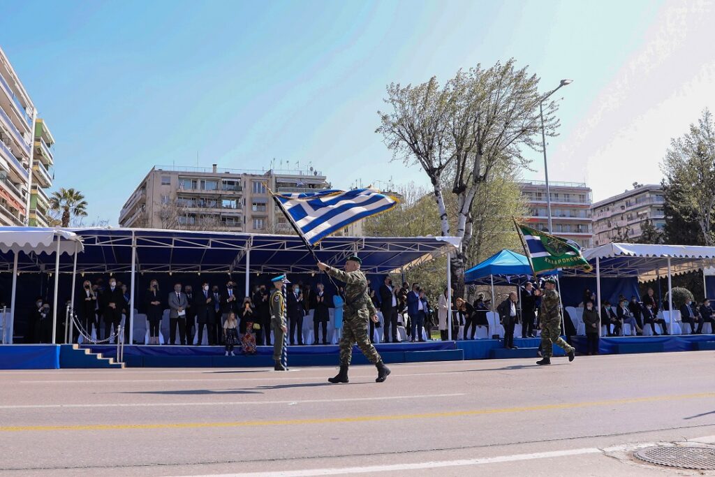 Συνοδευόμενος από την Αντιπεριφερειάρχη Θεσσαλονίκης Βούλα Πατουλίδου, τον Πρόεδρο του Περιφερειακού Συμβουλίου Κεντρικής Μακεδονίας Θεόδωρο Μητράκα και τον Αντιπεριφερειάρχη Ψηφιακής Διακυβέρνησης Άγγελο Χαριστέα, ο Περιφερειάρχης παρακολούθησε την παρέλαση στην παραλιακή λεωφόρο Μ. Αλεξάνδρου.