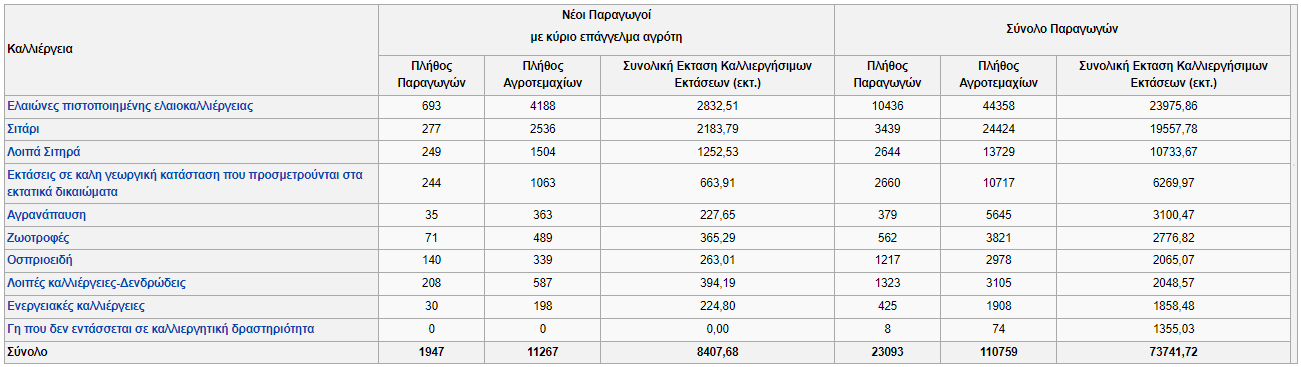 Εξάλλου, και η ίδια Ουκρανία, εν μέσω πολέμου, επέβαλε περιορισμούς στις εξαγωγές σειράς γεωργικών προϊόντων, όπως το σιτάρι και το ηλιέλαιο. Φαίνεται πως σε αυτό το ράλι του κίτρινου χρυσού, οι αγρότες της Χαλκιδικής είναι πρωταθλητές. Όσοι κατάφεραν να κάνουν αποθήκη είναι οι κερδισμένοι ενώ φαίνεται ότι από την Ποτίδαια και κάτω τα καλά στημένα χωράφια μπορούν να αποδώσουν μέχρι και 500 κιλά το στρέμμα με την τιμή να ανεβαίνει διαρκώς. Παρακάτω δείτε τον πίνακα αναφορικά με τις καλλιέργειες της Χαλκιδικής και άλλα ενδιαφέροντα στοιχεία αναφορικά με τις εκτάσεις της περιοχής.