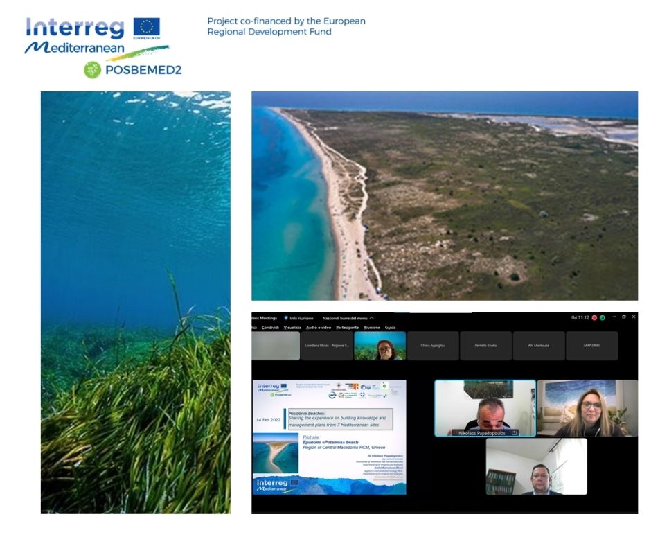 Η διαδικτυακή ημερίδα διάδοσης με θέμα: «Παραλίες Ποσειδωνίας: Ανταλλαγή εμπειρίας σχετικά με τη διάδοση τεχνογνωσίας και παρουσίαση των προτάσεων διαχείρισης από 7 μεσογειακές τοποθεσίες» διοργανώθηκε στις 14 Φεβρουαρίου 2022 από την Περιφερειακή Ενότητα της Σαρδηνίας με σκοπό την ευρεία διάδοση τεχνογνωσίας μεταξύ πέντε μεσογειακών χωρών και εταίρων.