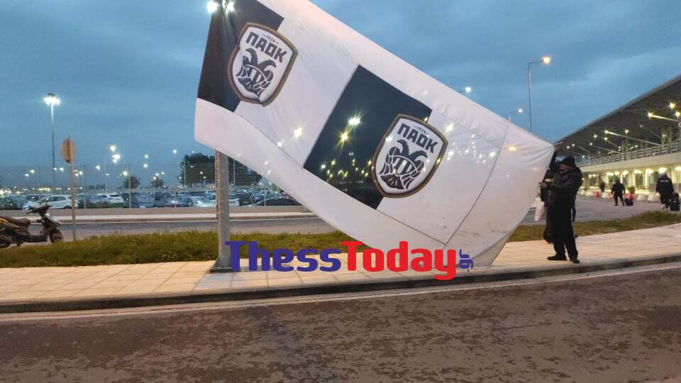 Η τεράστιων διαστάσεων σημαία με το έμβλημα του ΠΑΟΚ αναρτήθηκε στο αεροδρόμιο «Μακεδονία» ως καλωσόρισμα της αποστολής του Δικεφάλου του Βορρά στη Θεσσαλονίκη, μετά την σπουδαία πρόκριση επί της Γάνδη.