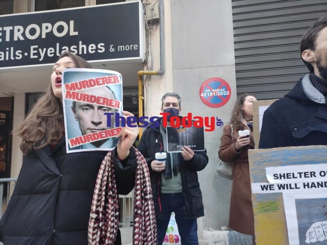Θεσσαλονίκη: Στο ρωσικό προξενείο για διαμαρτυρία Ουκρανοί πολίτες (ΦΩΤΟ-VIDEO)