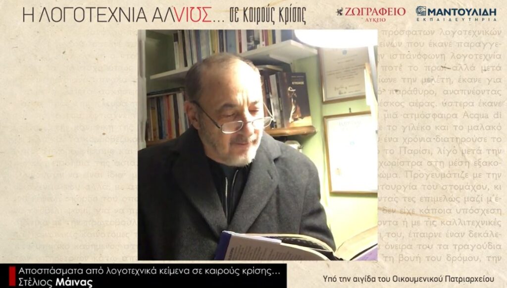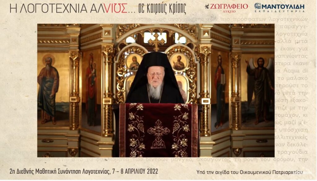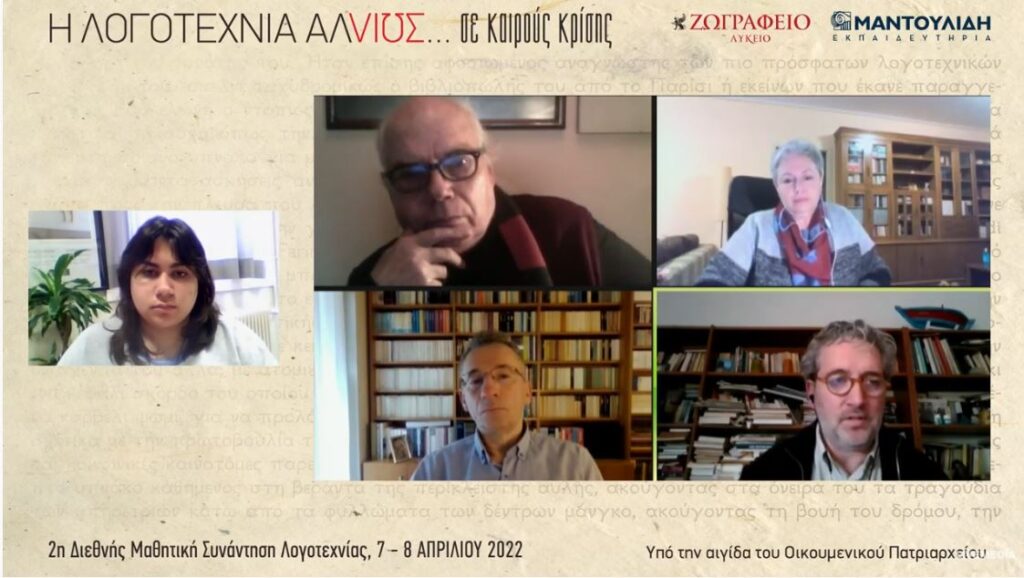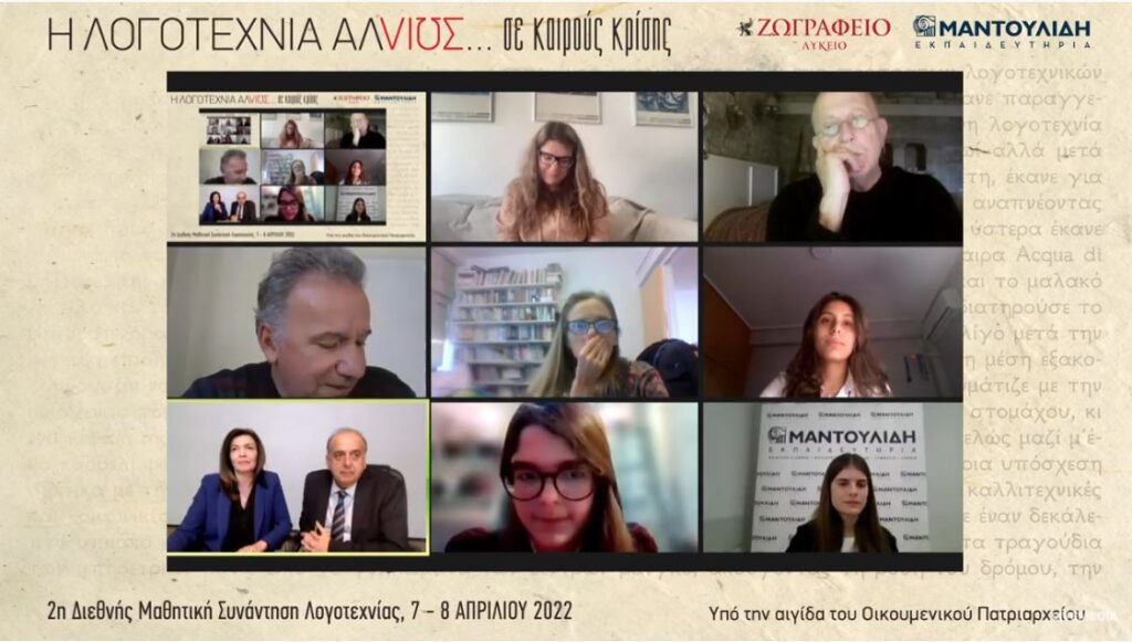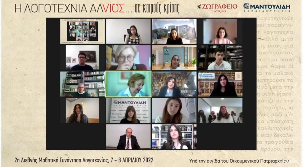 «Απ’ τες εννιά» το πρωί όπως θα έλεγε και ο Κ.Π. Καβάφης ξεκίνησε διαδικτυακά η 2η Διεθνής Μαθητική Συνάντηση Λογοτεχνίας «Η λογοτεχνία αλλιώς», η οποία συνδιοργανώνεται από τα Εκπαιδευτήρια Ε. Μαντουλίδη και το Ζωγράφειο Λύκειο Κωνσταντινούπολης στις 7 και 8 Απριλίου υπό την αιγίδα του Οικουμενικού Πατριαρχείου.
