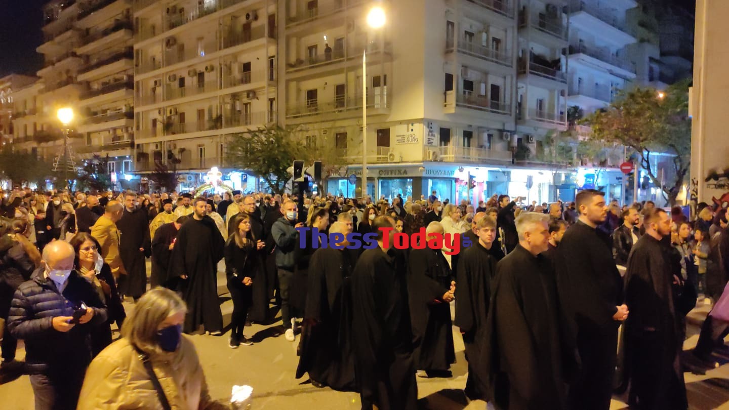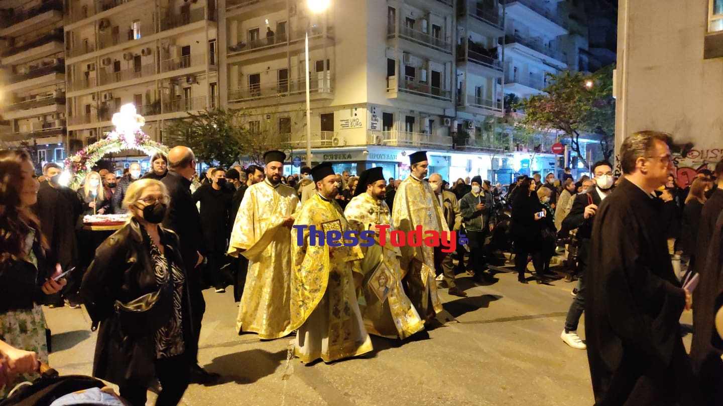 Με κατάνυξη και θρησκευτική ευλάβεια χιλιάδες πιστοί συμμετέχουν το βράδυ της Μ. Παρασκευής στην περιφορά του Επιταφίου του Μητροπολιτικού Ναού Γρηγορίου Παλαμά.