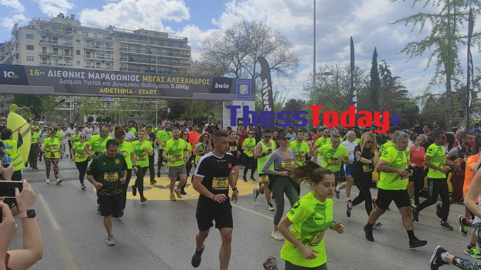 Σχεδόν 5.000 δρομείς συμμετέχουν στον Δρόμο Υγείας και Δυναμικού Βαδίσματος των 5 χλμ που εκκίνησε από το δημαρχιακό Μέγαρο Θεσσαλονίκης, στο πλαίσιο της κορύφωσης των αγώνων για τον 16ο Διεθνή Μαραθώνιο «Μέγας Αλέξανδρος».