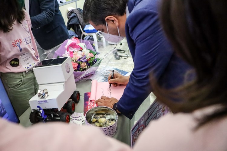 Ο κ. Τζιτζικώστας είχε την ευκαιρία να μιλήσει με τους μαθητές που διαγωνίζονται, να δει τις δημιουργίες τους και τα ρομποτικά project, που επινόησαν τα παιδιά και να συζητήσει μαζί τους για το μέλλον, για την εκπαίδευση, για την καινοτομία και τις νέες τεχνολογίες και για το θέμα του διαγωνισμού, που αφορά στο μέλλον των παγκόσμιων μεταφορών.