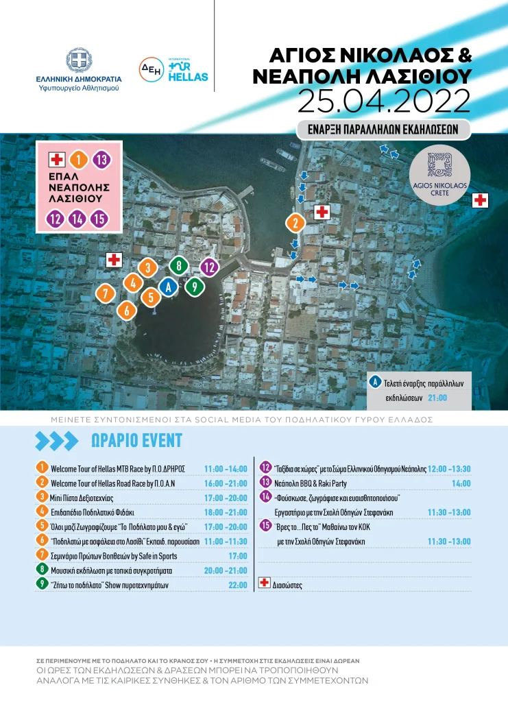 Λίγες ώρες αργότερα θα λάβει χώρα το ποδηλατικό Σιρκουί Tour of Hellas Road Race by Π.Ο.Α.Ν. με το οποίο θα ολοκληρωθεί το πρόγραμμα των Παράλληλων εκδηλώσεων σε Άγιο Νικόλαο και Νεάπολη Λασιθίου.