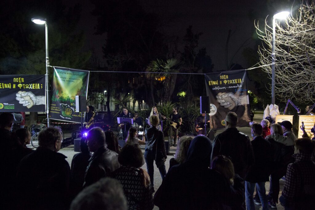 Με τη συμμετοχή πλήθους κόσμου πραγματοποιήθηκε το Σάββατο 2 Απριλίου, στον πεζόδρομο της Αποστόλου Παύλου στο Θησείο, η μεγάλη εκδήλωση των Οικολόγων ΠΡΑΣΙΝΩΝ με κεντρικό θέμα «Μια νύχτα στον δρόμο», η οποία ήταν αφιερωμένη στους άστεγους συμπολίτες μας.