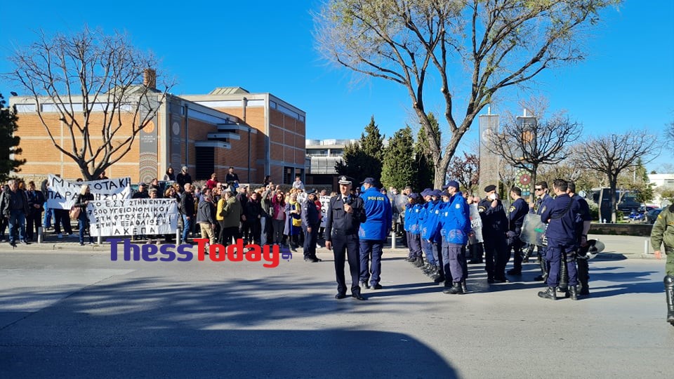 Διαμαρτυρία υγειονομικών βρίσκεται σε εξέλιξη έξω από το συνεδριακό κέντρο “Ιωάννης Βελλιδης””στη Θεσσαλονίκη λίγο πριν την άφιξη του Πρωθυπουργού, Κυριάκου Μητσοτάκη για το προσυνέδριο.