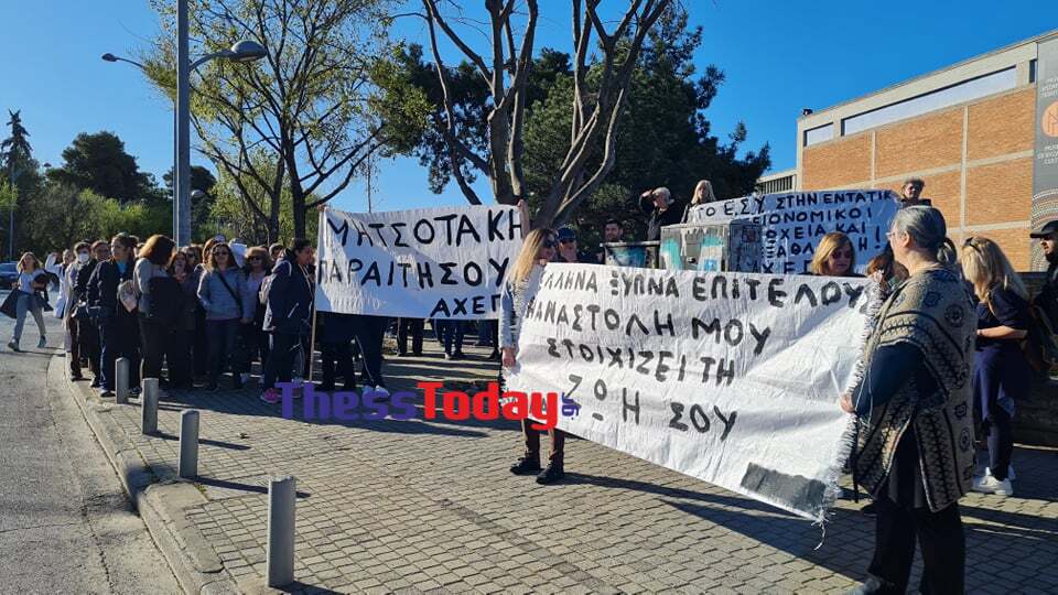 Θεσσαλονίκη: Διαμαρτυρία υγειονομικών πριν την άφιξη Μητσοτάκη στο Βελλιδειο (VIDEO)