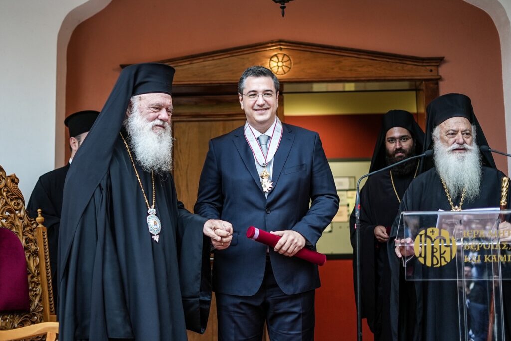 Κατά τη διάρκεια της εκδήλωσης, ο κ. Τζιτζικώστας τιμήθηκε από τον Αρχιεπίσκοπο Ιερώνυμο και τον Μητροπολίτη Παντελεήμονα με το παράσημο της Μητρόπολης Βεροίας, Ναούσης και Καμπανίας, για τη συνολική προσφορά του στην περιοχή.