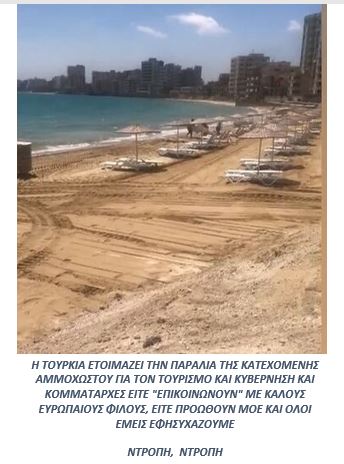 Η Τουρκία συνεχίζει ανενόχλητη την προέλασή της στην Αμμόχωστο. Λέμε ανενόχλητη διότι δεν βλέπουμε να αντιμετωπίζεται η πρόκληση με αποτελεσματικό τρόπο, αλλά με τον ίδιο ηττοπαθή, κενού περιεχομένου τρόπο, που έχουν εγκαταλειφθεί όλα τα κατεχόμενα εδάφη μας στο έλεος του Τούρκου κατακτητή. Τα Κόμματα παραμένουν αδρανή και δεν κινητοποιούν το Λαό ο οποίος αφήνεται να εφησυχάζει στις πολυθρόνες του. Η δε Κυβέρνηση κάμνει εκστρατεία περαιτέρω αναβάθμισης του παράνομου καθεστώτος, με ΜΟΕ τα οποία προωθεί για να σωθεί ΤΑΧΑ, η περίκλειστη Αμμόχωστος.
