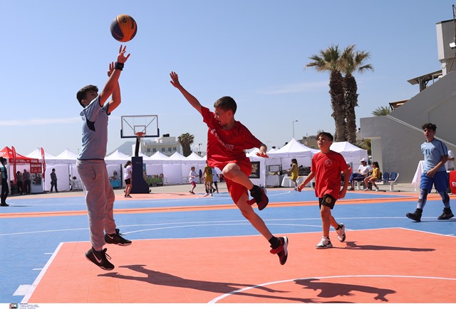 Πλήθος παιδιών κατέκλυσε τον ειδικά διαμορφωμένο χώρο του ΕΑΚΗ (Λίντο) με αγώνες 3Χ3 στο ξεκίνημα των εκδηλώσεων