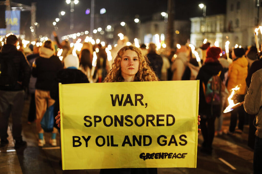 Το ΠΡΑΣΙΝΟ ΚΙΝΗΜΑ συντάσσεται με την δράση που ανέλαβε η Greenpeace ώστε να σταματήσουν τα ορυκτά καύσιμα να πυροδοτούν τους πολέμους και την κλιματική κατάρρευση.