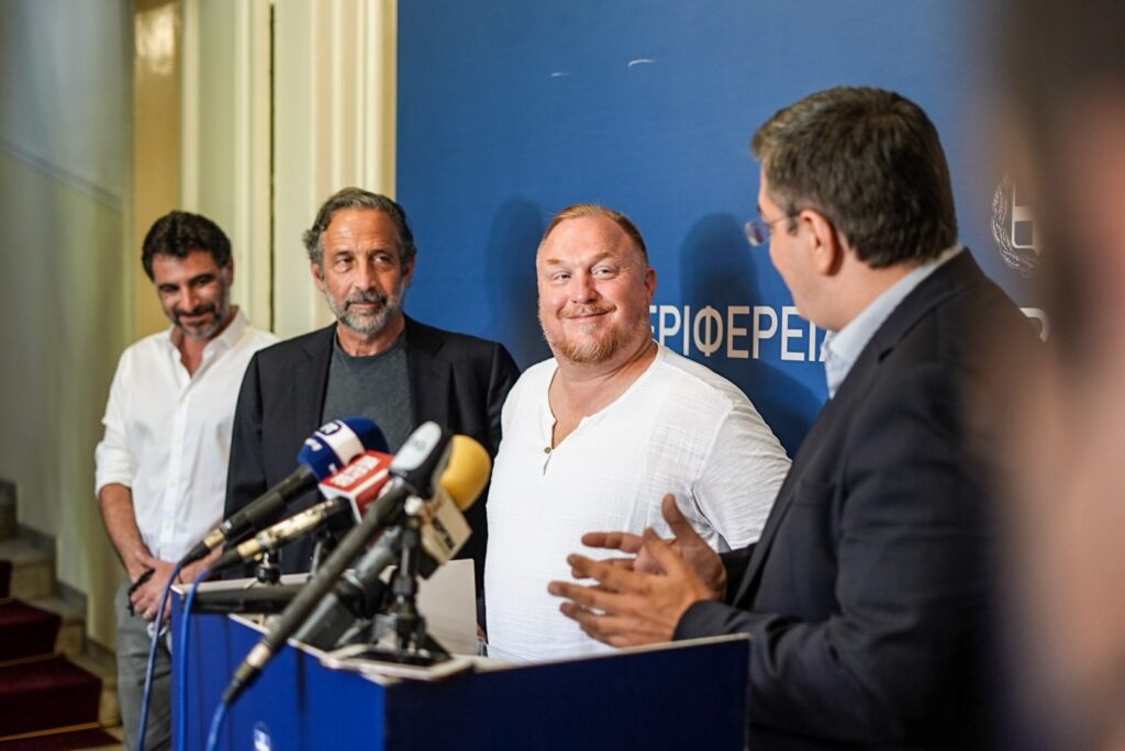 Συνάντηση με τους υπεύθυνους της νέας χολιγουντιανής κινηματογραφικής παραγωγής, τα γυρίσματα της οποίας ξεκινούν στη Θεσσαλονίκη, είχε σήμερα ο Περιφερειάρχης Κεντρικής Μακεδονίας Απόστολος Τζιτζικώστας, στο κτίριο Διοίκησης της Περιφέρειας, στη Θεσσαλονίκη.