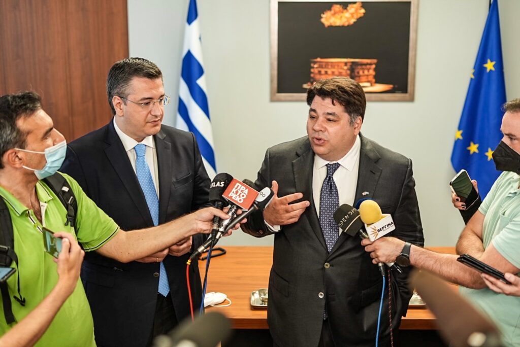 Οι κ.κ. Τζιτζικώστας και Τσούνης συζήτησαν για τις υποδομές στη Θεσσαλονίκη, για το λιμάνι, το αεροδρόμιο τη ΔΕΘ, τα Πανεπιστήμια και το μεγάλο έργο της ενοποίησης και ανάπλασης του παραλιακού μετώπου από το Καλοχώρι έως το Αγγελοχώρι, σε μήκος 40 χλμ., αλλά και θέματα αμοιβαίου ενδιαφέροντος, όπως η συνεργασία σε επίπεδο επενδύσεων, αλλά και εκπαίδευσης, πολιτισμού και τουρισμού.
