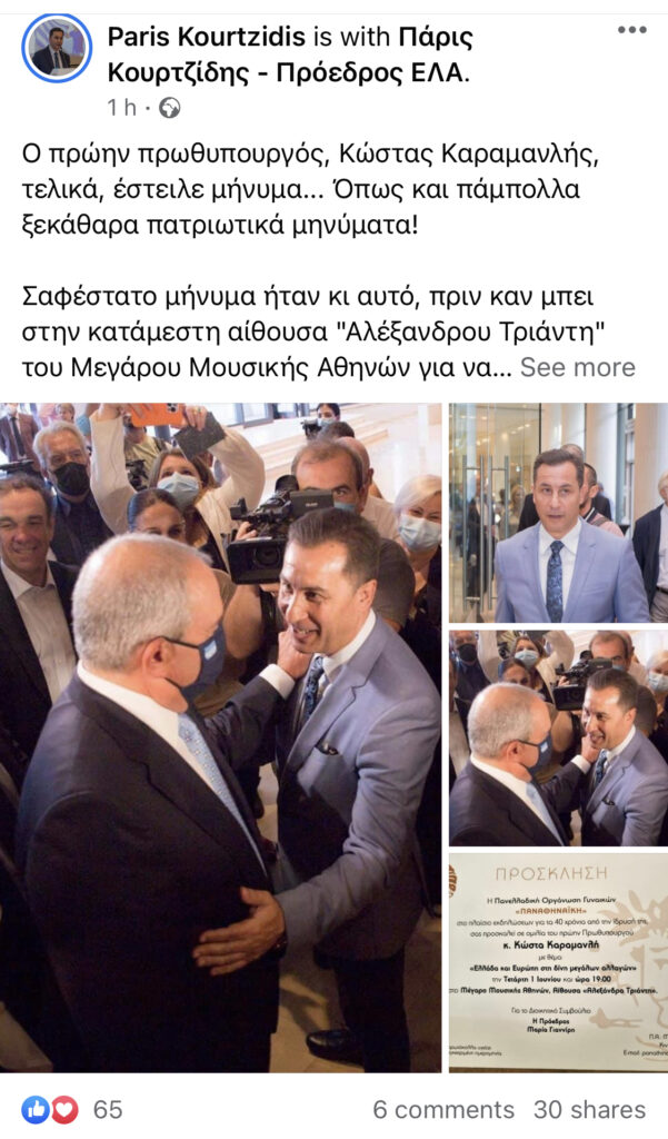 Ο πρόεδρος της ΕΛΛΗΝΙΚΗΣ ΑΝΑΤΡΟΠΗΣ δήλωσε παρών στην μεγάλη σημασίας ομιλία του πρώην πρωθυπουργού Κώστα Καραμανλή