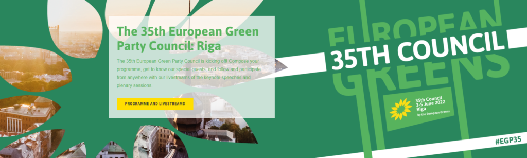 Ξεκινούν σήμερα Πέμπτη 2/6 στη Ρίγα της Λετονίας οι εργασίες του 35ου Συμβουλίου του Ευρωπαϊκού Πράσινου Κόμματος (ΕΠΚ), που θα διαρκέσει μέχρι την Κυριακή 5/6, με τη συμμετοχή εκπροσώπων των Οικολόγων ΠΡΑΣΙΝΩΝ, του μοναδικού κόμματος μέλους των Ευρωπαίων Πράσινων στην Ελλάδα.
