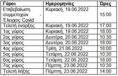 Την Κυριακή, 19.06.2022 από τις 15:00 έως τις 17.00 με φυσική παρουσία στη γραμματεία των αγώνων.