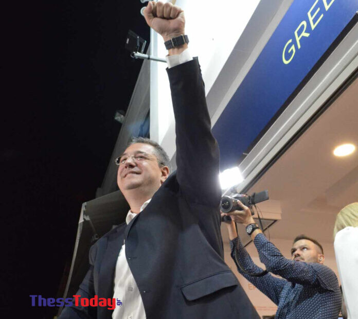 Θριαμβευτική ήταν η υποδοχή του Απόστολου Τζιτζικώστα στο εκλογικό του κέντρο στη Θεσσαλονίκη, ο οποίος έφτασε λίγο μετά τις 10 το βράδυ της Κυριακής (8/10) μαζί με την οικογένειά του.