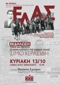Εκδηλώσεις για τα 80 χρόνια από την απελευθέρωση της Θεσσαλονίκης από τον ΕΛΑΣ.