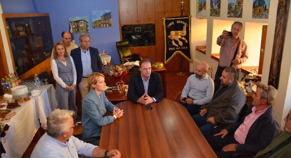 Αλεξάνδρα Σδούκου, την οποία υποδέχθηκε εν συνεχεία στο Δημοτικό Κατάστημα της Αρναίας.
