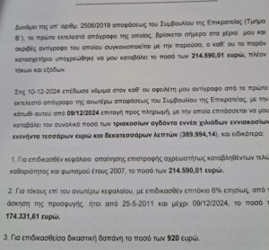 Μπροστά στον κίνδυνο το οφειλόμενο ποσό να μεγαλώσει ελέω προσαυξήσεων κι έτι έχουν ήδη επιδικαστεί περί των 7-8 εκατ. ευρώ (κι έπεται συνέχεια) η διοίκηση του Δήμου συμφώνησε στον εξώδικο διακανονισμό ωστόσο για το ποσό των 7.675.000 ευρώ που καλείται να πληρώσει την ευθύνη φέρει ακέραια η πρώην διοίκηση του δήμου της περιόδου εκείνης.