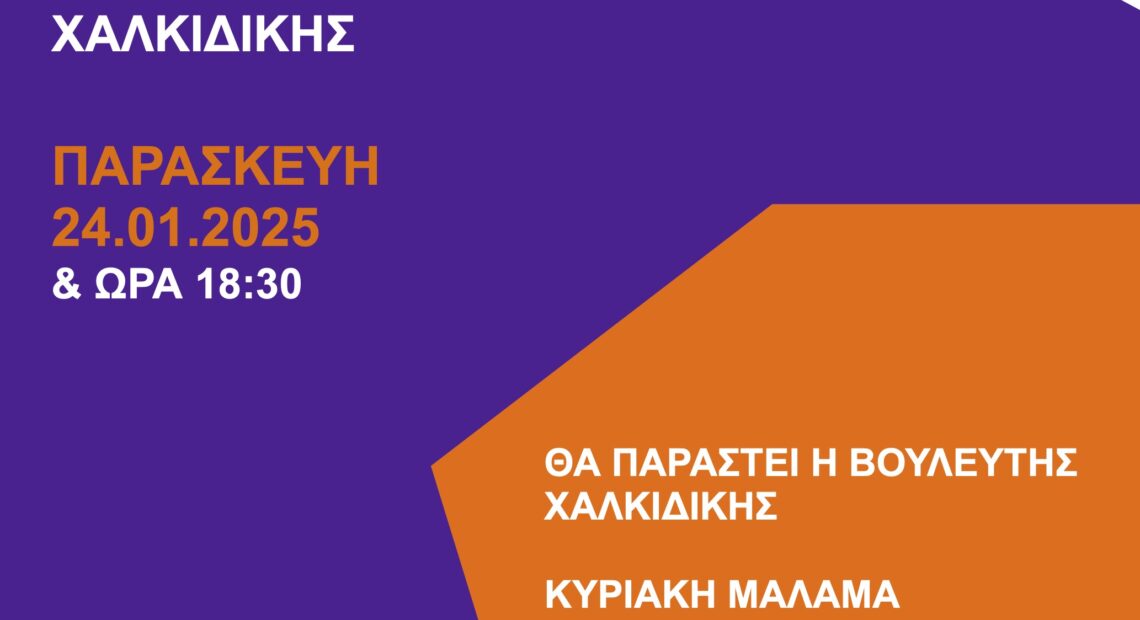 Στην εκδήλωση θα παραστεί η βουλευτής Χαλκιδικής Κυριακή Μάλαμα