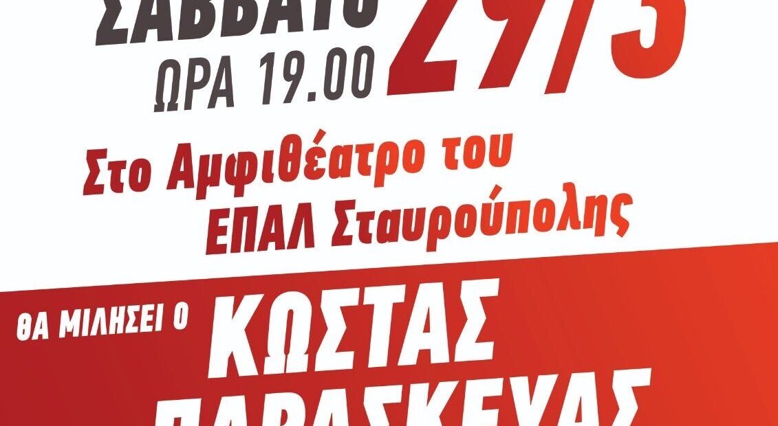 29 Μάρτη, στις 19:00, στο ΕΠΑΛ Σταυρούπολης με ομιλητή τον Κώστα